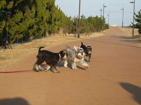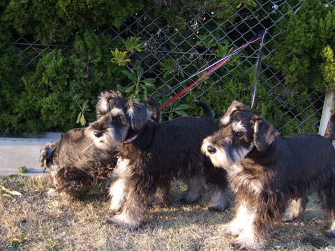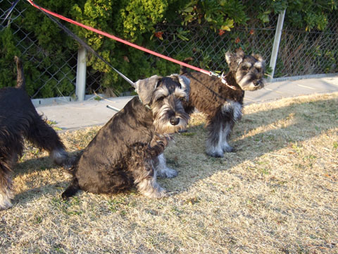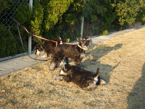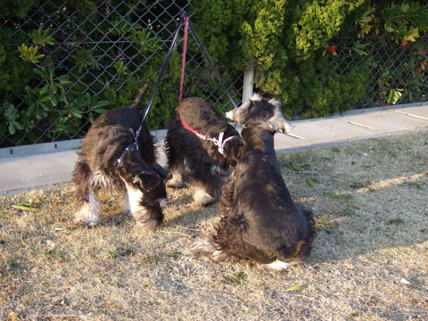こむぎとくるみはあんずママの方を見ているんですが、たいようだけ違う行動。