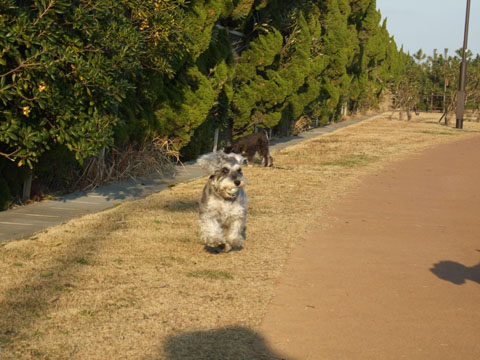 どうやらフェンスが怖いらしく、フェンスから離れようとしてます。
