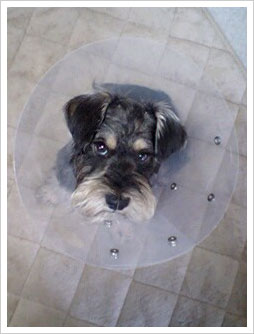 がじろーのヘルニアと違い、安静ということはなかったんですが、傷口を舐めてしまうので、ベルのカラーを借りてました。