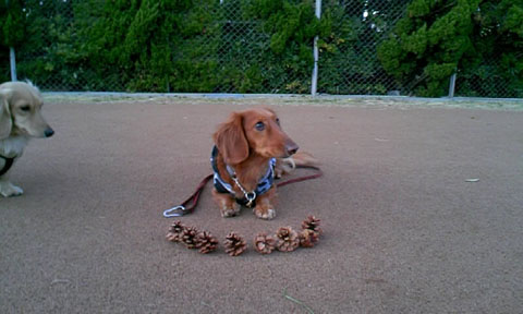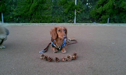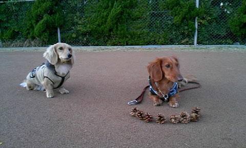このあと、だじょーとハナ、ビーニーにまつぼっくりを奪われてましたw