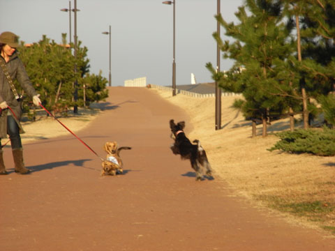 ブロンディ&ビーニー親子が来てテンションが上がるくるみ。