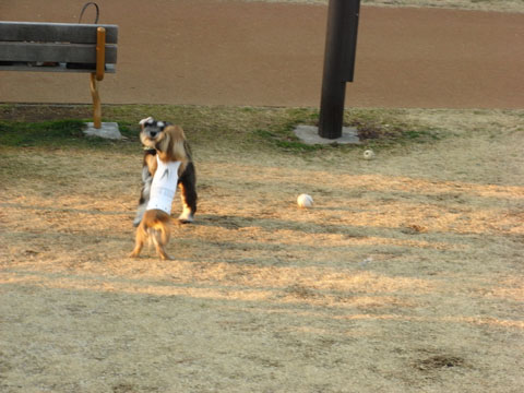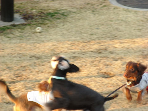 ボールをくわえたあんずが走ってきましたが、こむぎを助けることもなく通過w