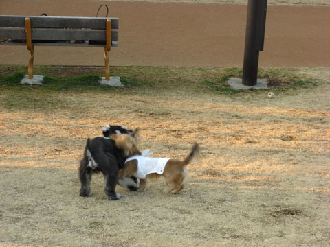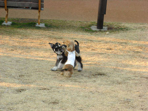 元気に遊ぶあんずの子を紹介しましたが、昨日はこむぎとビーニーが遊んでいました。