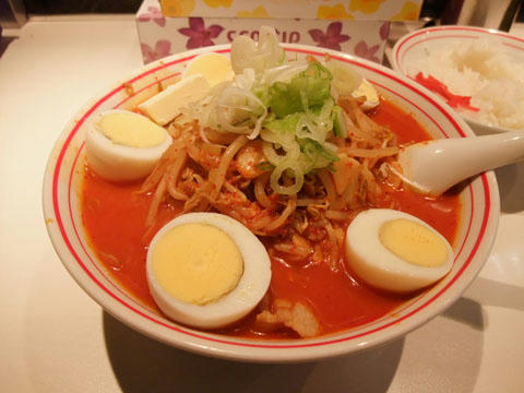 中本のメニューや、中本の道HPでは、北極ラーメン、蒙古卵麺についで辛い暖かいラーメン。