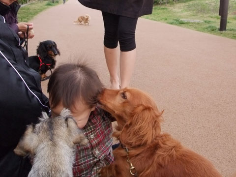 がじろーはKくんのことが好きみたいで、顔をなめたり抱きついたり。