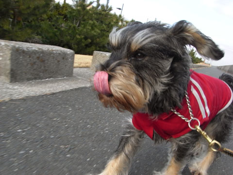 おいらも飛ばされそうだったけど、こすけが海に落ちそうになりました^^;