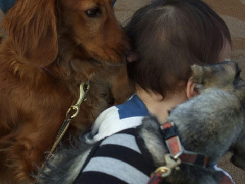 なでろと言わんばかりにどっかとKくんの前に座ると、Kくんがなでなでしてくれました♪