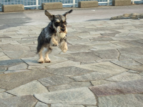 ってのは冗談で、こむぎと遊びたくてちょっかいを出すビーニーです。