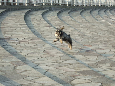 階段の上からおいらがボールを投げ、それをこすけが取ってくる。