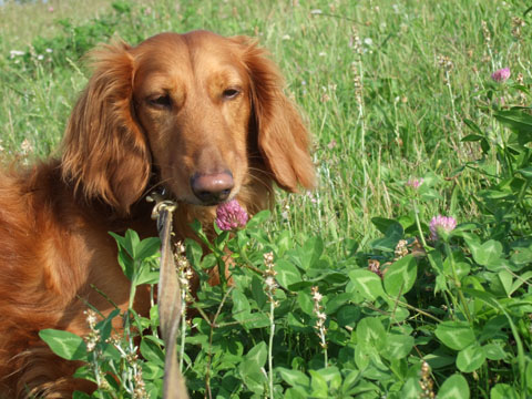 花の匂いをかいでうっとりするがじろー。
