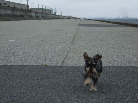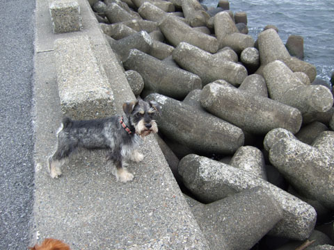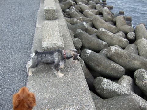 テトラポットに降りることはできるので、取りに行こうとしたんだけど、生憎こすけのボールは穴あきボール。