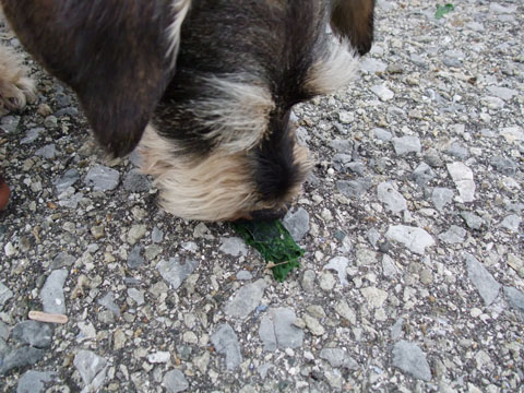 みんなと遊んでいるとき、がじろーは草を食べていました。