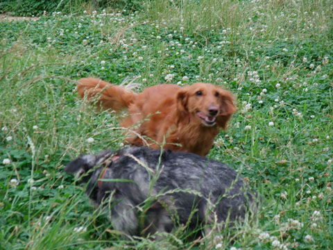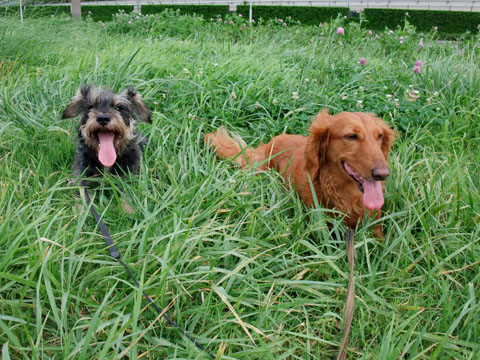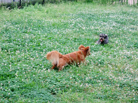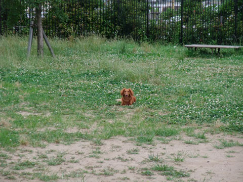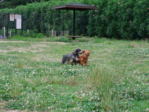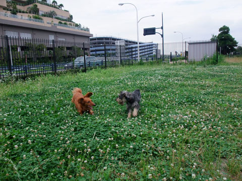 今日は午後から雨との予報だったので、朝散歩はドッグランへ。