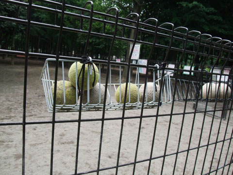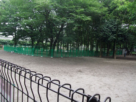 グラウンド、テニスコートの脇を通り抜け、坂を下りて道路を渡るとドッグランがあります。