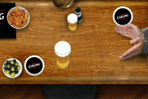 ビールのグラスを手元に運ぶんですが、iPhoneを傾けてカウンターから落とさないように手元まで移動させます。