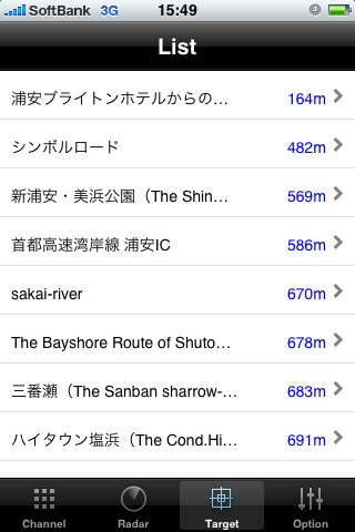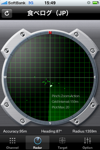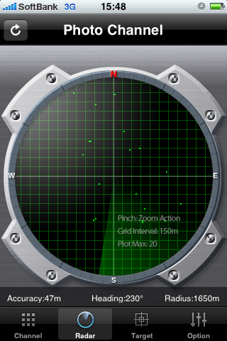 GPSで自分の位置を側位し、近隣の情報をレーダーに表示します。
