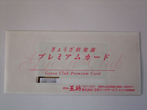 で、スタンプが全部埋まったので、『ぎょうざ倶楽部プレミアムカード』をいただきました。