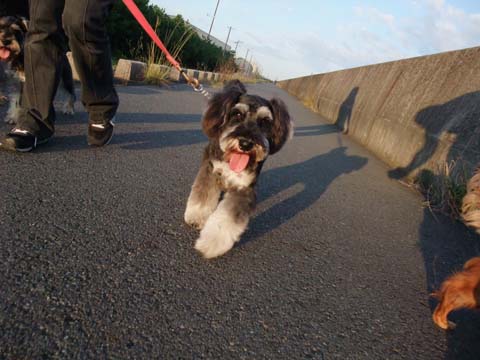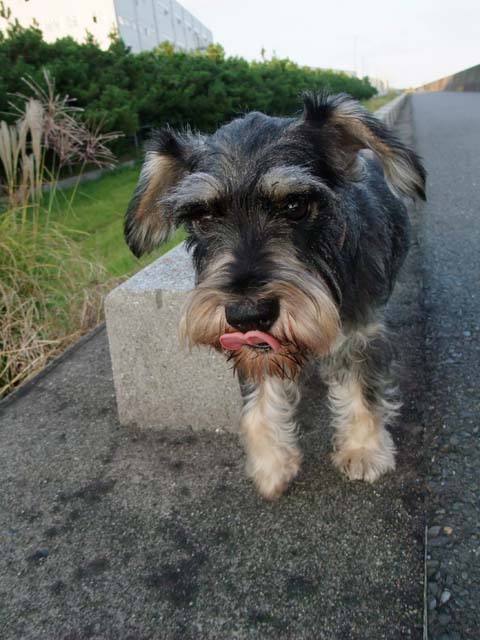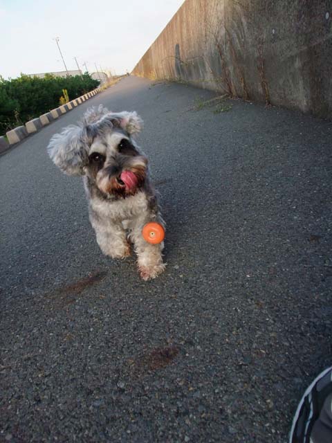 あんずとボール遊びしていたんですが、ボールが土手下に落ちたのでそれを取りに下りたんです。