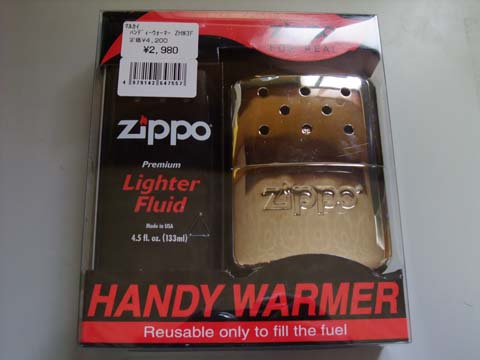 Zippoオイルの化学反応で暖かくなるカイロです。