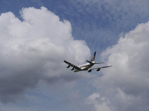 はじめてお目にかかる総2階建て機のエアバスA380。