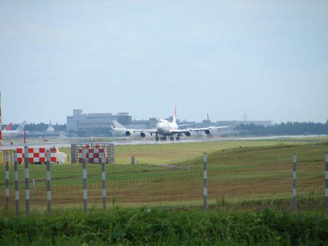 今回は風向きの関係で、さくらの丘公園・航空科学博物館側からの離着陸(34L)だったのですが、反対の16Rからの着陸は迫力ありそうです。