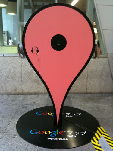 秋葉原駅前にあったGoogleMapのピンのオブジェ。