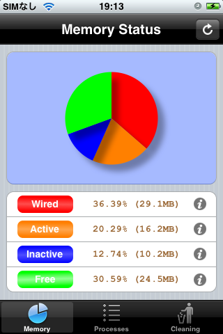 これは内部メモリを見るAppですが、黄緑色が空きメモリ。