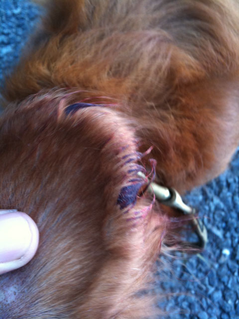 しばらくあそんでから帰ろうとしたら、なんかがじろーの耳が変な感じに。