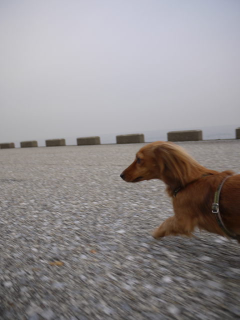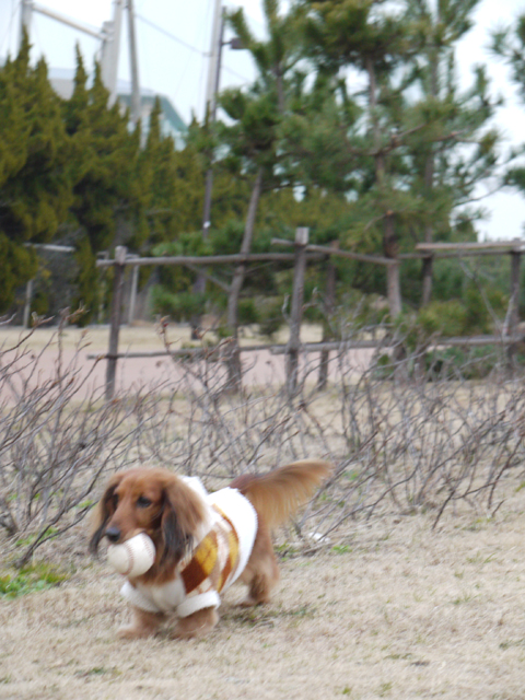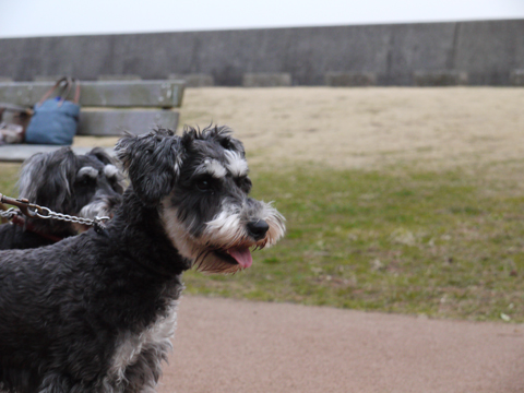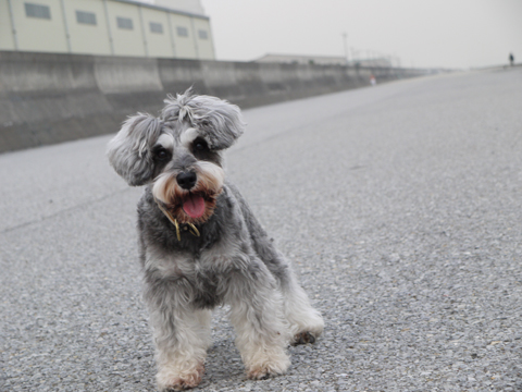 岸壁散歩していたんですが、ボールを投げて欲しくて催促しています。