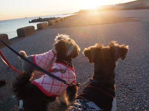 今日は駐車場の近くであんず家のワンたちに会えたので、一緒に岸壁散歩しました。