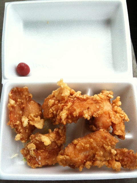 さっそく食べてみましたが、胸肉の唐揚げでしょうから、多少の硬さはありますが生姜が効いてておいしい♪