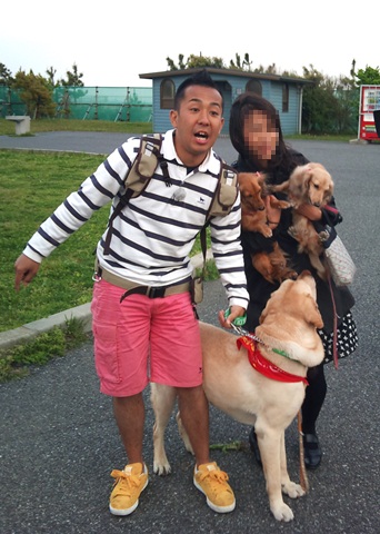 ダックスだらけに驚いた松本くんが駆け寄ってきましたよ♪