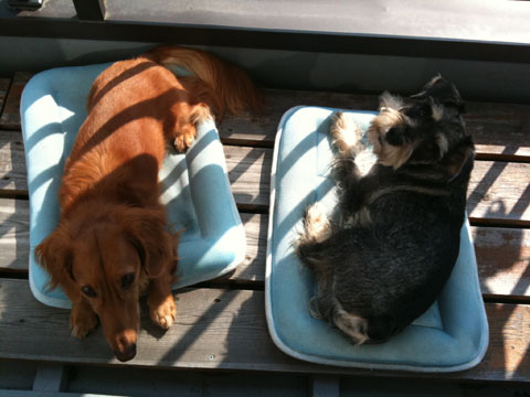 こすけは他のワンにケンカ売って大騒ぎしたので車に放り込んだ^^;