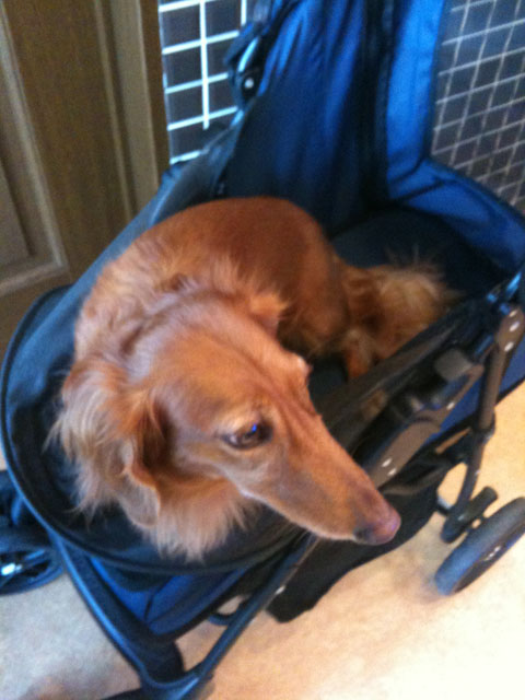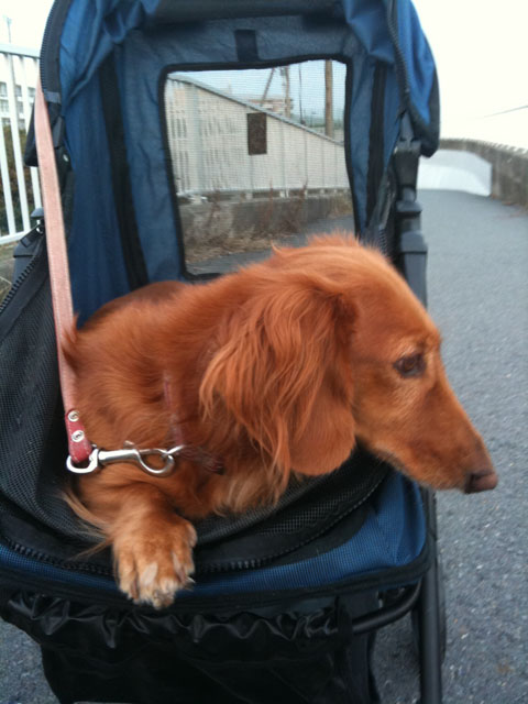 たまに歩きたくなるようで、カートの上で足踏みしてエア散歩してます。