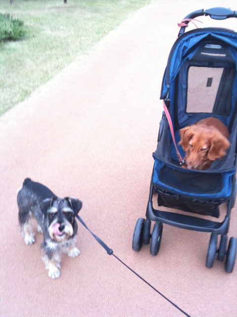 晩ごはんの時に薬飲ませて、さっき雨が降る前にと散歩したんだけど、薬が効いたのか歩きたがってました。