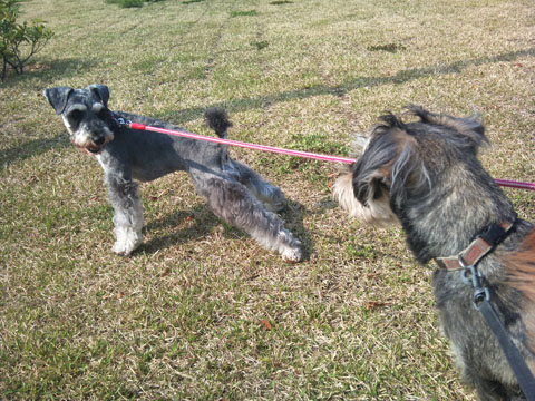 散歩してて、あ、シュナだぁ~って近づいたら、蘭ママさんがブログで見たこすけを覚えていてくださって蘭ちゃんと判明。