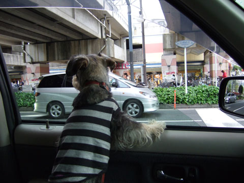 最近散歩へ行くときは、がじこすをクレートに入れているんですが、今日は昼寝してて出遅れたので、久々に助手席。