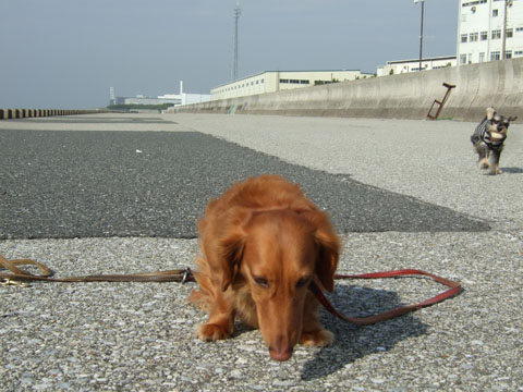 こすけのロングリードをつけていたんですが、それが重りになっておいらの足でも追いつけたけど。