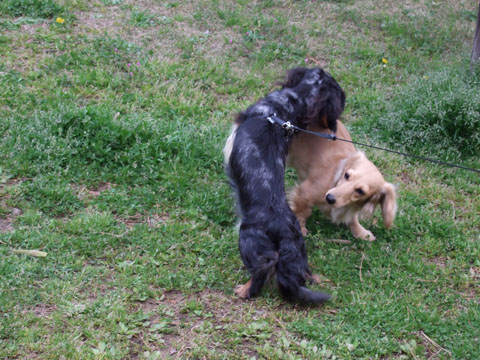 お散歩仲間の自称ボス対決、いつか決着つけなくちゃね♪