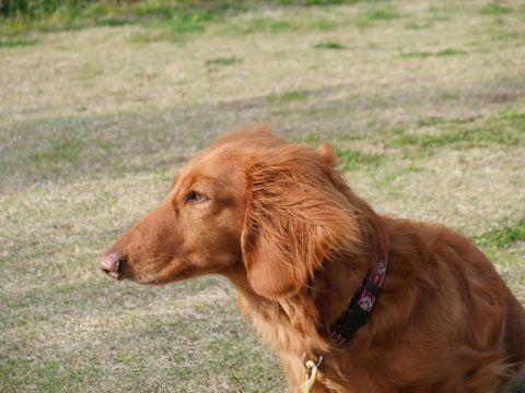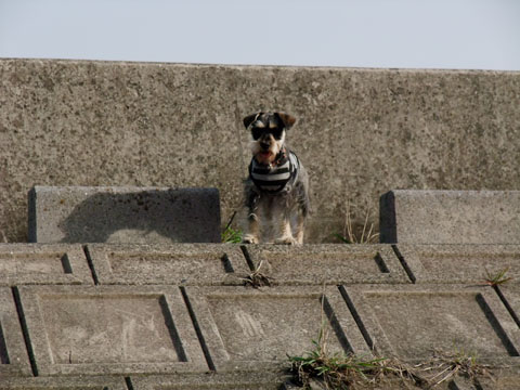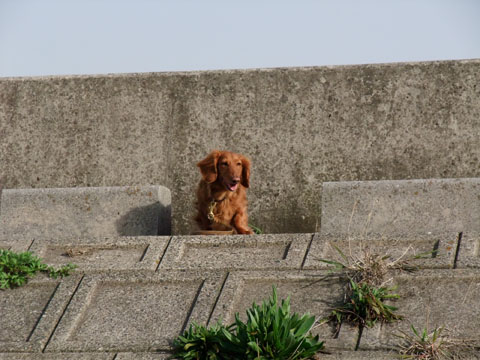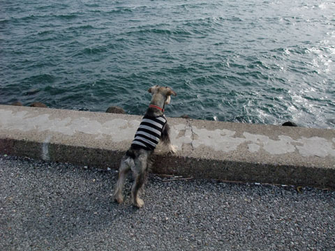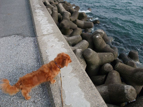 ここは土手だからいいんだけど、岸壁でボールをくわえたまま海を覗きこむのだけはやめて欲しい。