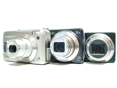 左から光学ズーム3倍のF31fd、5倍のF100fd、7倍のR7。