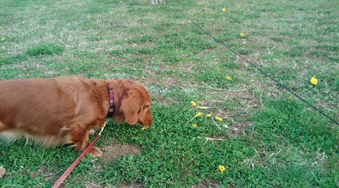 遠くでなにやらにおいを嗅いでいるのはこすけです。