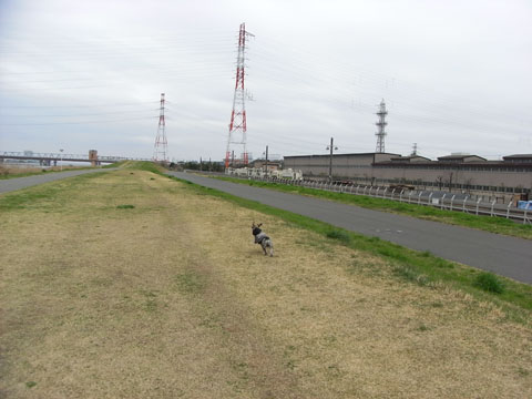 やってきたのは江戸川放水路の土手。