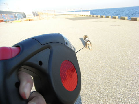 そうそう、先日買った300円のロングリード、さっそく使ってます。