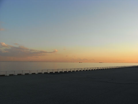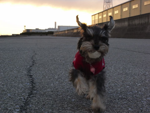最近の海の散歩ですが、堤防上ではなく、下の広い所で散歩しています。