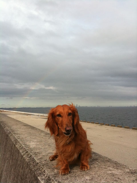 先日の写真になりますが、小雨が降る散歩で虹がでましたよ。
