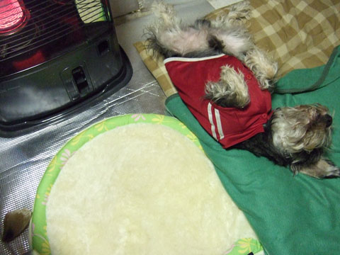 クレートに入れなかったら長座布団とフリースで寝てもらうしかないな。