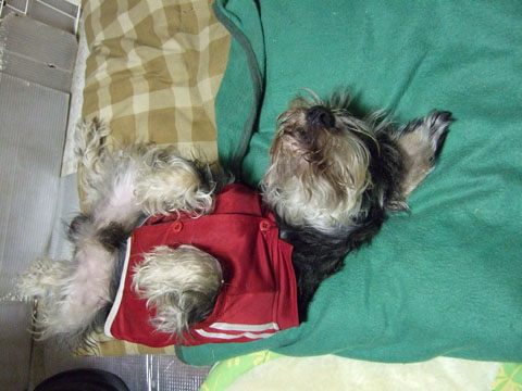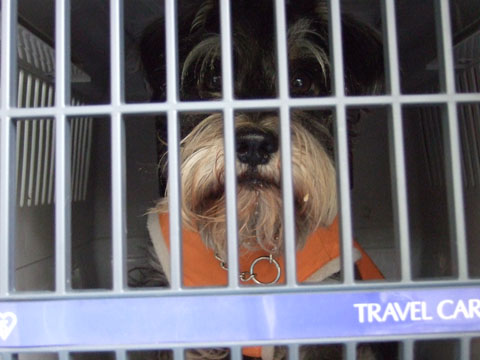 がじろーはクッキーで、こすけは散歩で釣られてクレート移動。