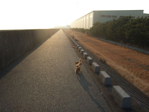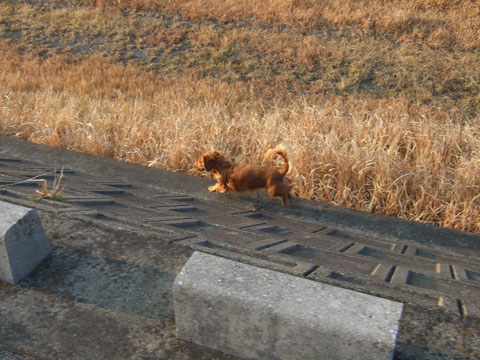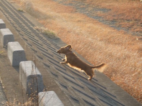 いきなり走り出したかと思ったら、また土手下まで駆け降りた。