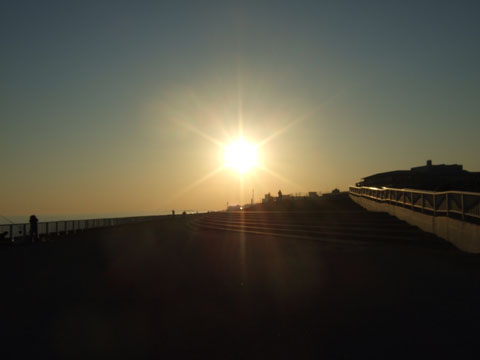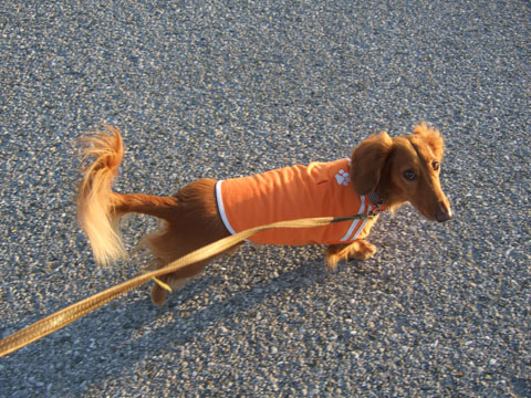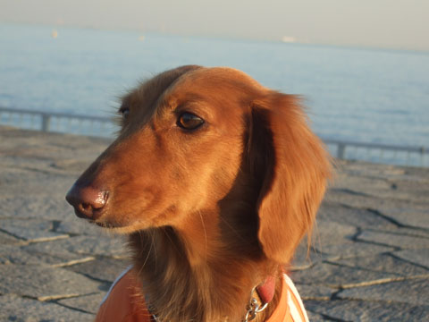 夕日に照らされるがじろー。